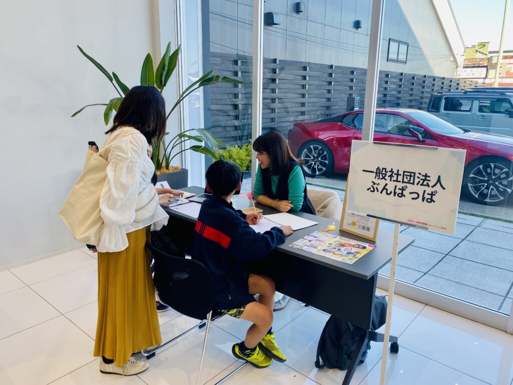 ぶんぱっぱのブースでは、活動紹介をしたり、”うれしいってどんなとき?”をテーマに絵を描いてもらいました。